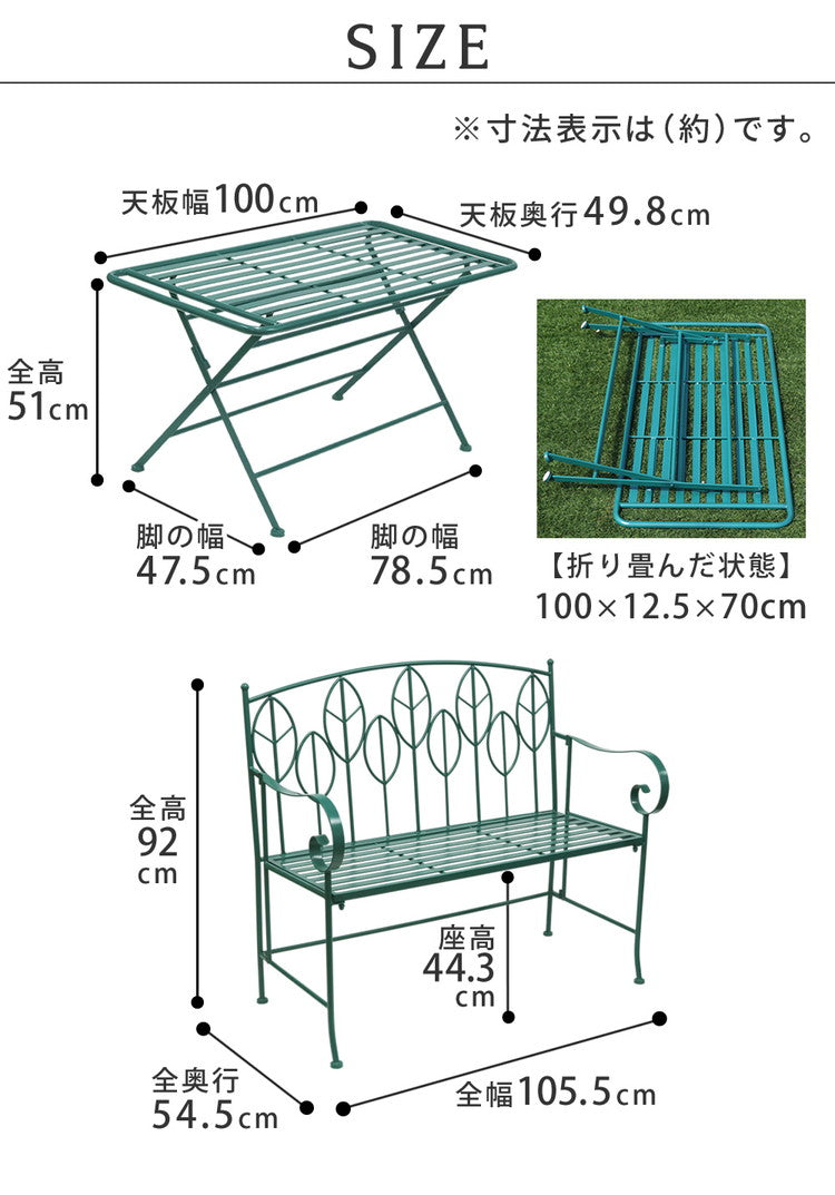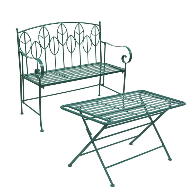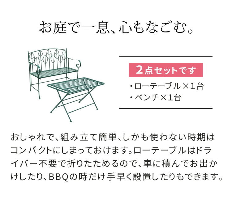 アイアン製ローテーブル&ベンチセット Sunny Leaf(サニーリーフ) SPL-9003B-2PS ガーデンファニチャーセット ガーデンテーブルセット 角丸長方形 簡単組立 折りたたみ式 ベンチセット 二人掛け(代引不可)