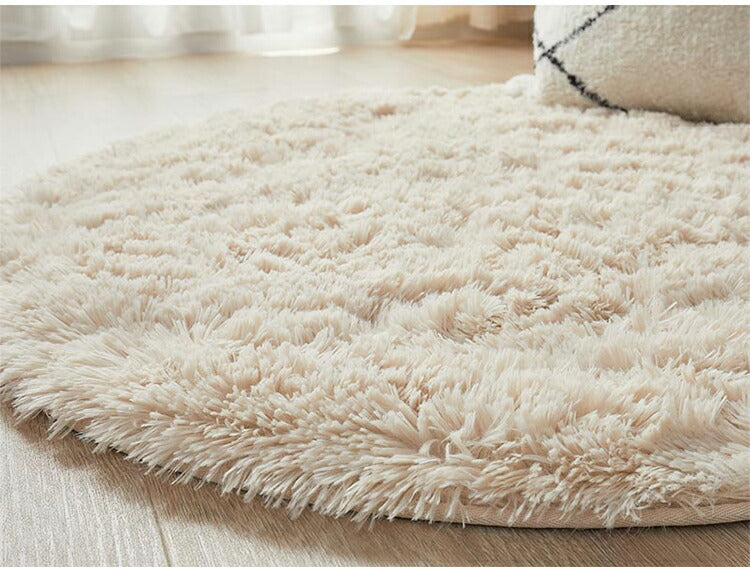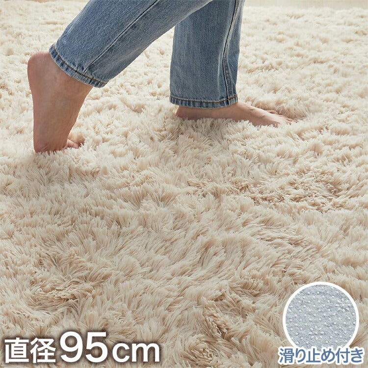 ラグマット シフォン 95cm 円形 ラグ フロアマット 長毛 滑り止め付き おしゃれ かわいい ナチュラル 北欧 韓国 丸形 円型 丸型(代引不可)