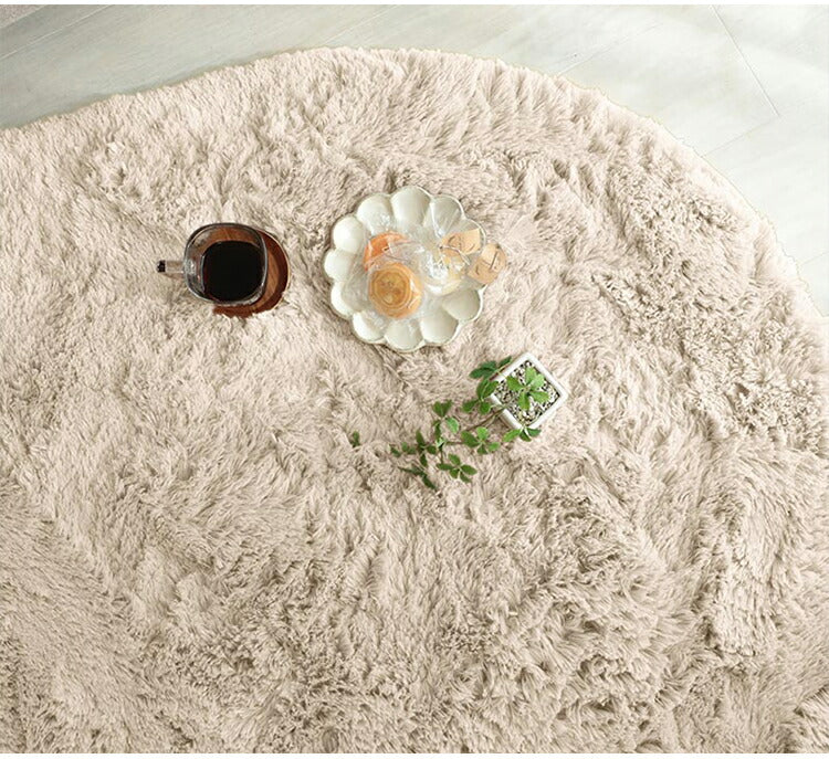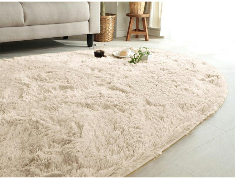 ラグマット シフォン 130×190cm 異形 ラグ フロアマット 長毛 滑り止め付き おしゃれ かわいい ナチュラル 北欧 韓国 丸形 円型 丸型(代引不可)