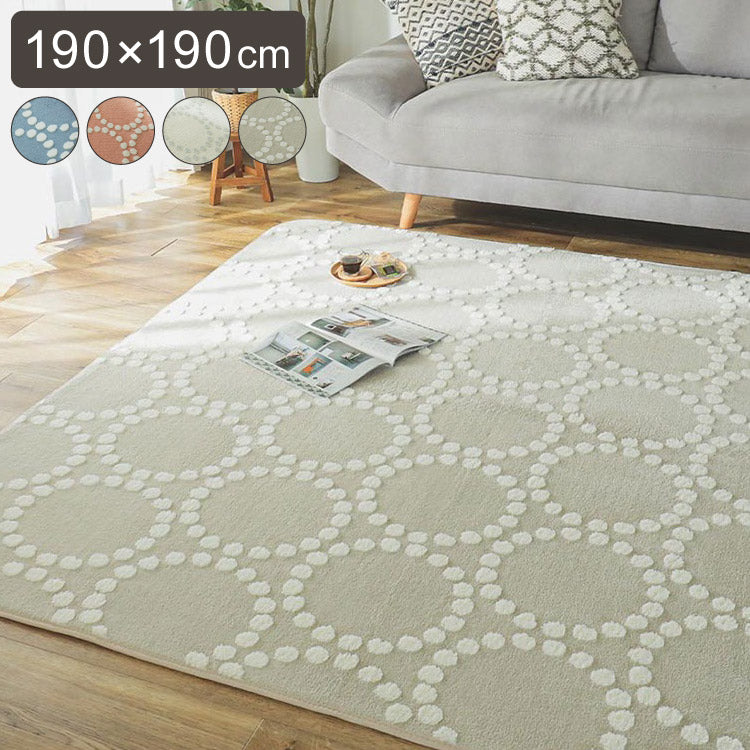 ラグ 大人かわいい ドット柄 190×190cm ベーレル 北欧 洗える ラグマット カーペット ウレタンラグ 滑り止め すべり止め ホットカーペット対応 床暖房対応 おしゃれ(代引不可)