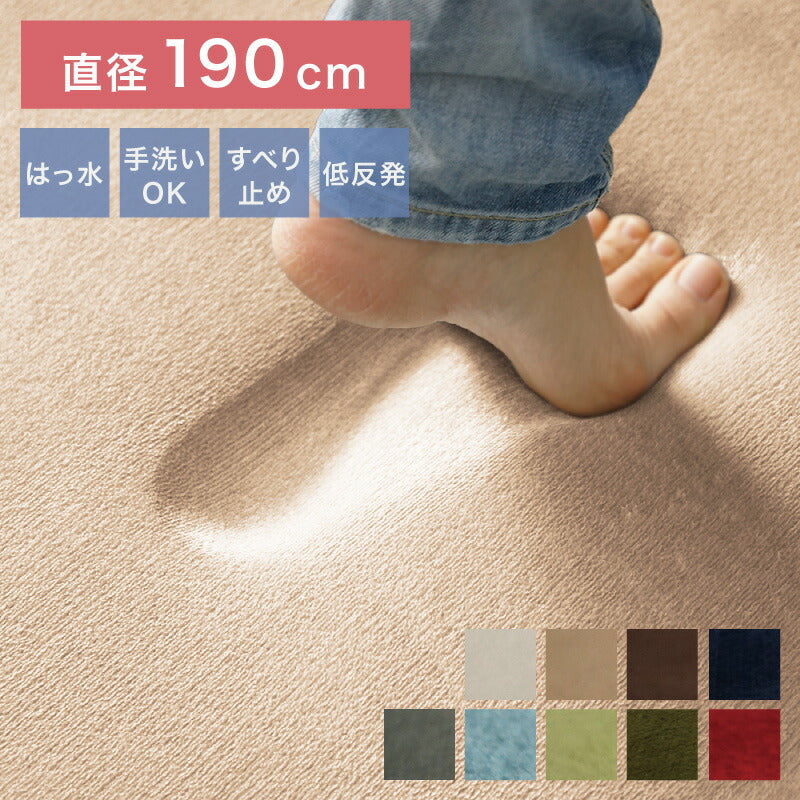 ラグ ラグマット はっ水 ふわとろラグ 低反発 厚手 洗える ホリデープラス 直径190cm 円形 丸 2畳 無地 撥水 耐熱 床暖房 ホットカーペット 対応 こたつ敷き クッション(代引不可)