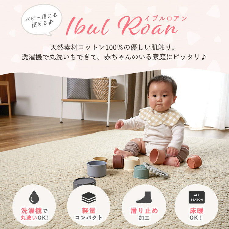 大人かわいいイブルラグ 190×190cm くすみカラー おしゃれ 可愛い かわいい イブル マルチカバー ラグ ラグマット カーペット ベビーマット こたつ布団 敷パッド(代引不可)