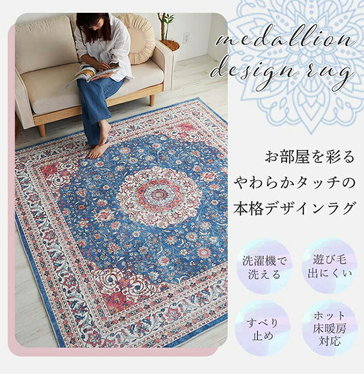 ラグ 190×190cm 長方形 滑り止め付き ラグマット 柄物 ペルシャ絨毯風 デザインラグ マット 艶消し おしゃれ かわいい 洗える ダイニングラグ 絨毯(代引不可)