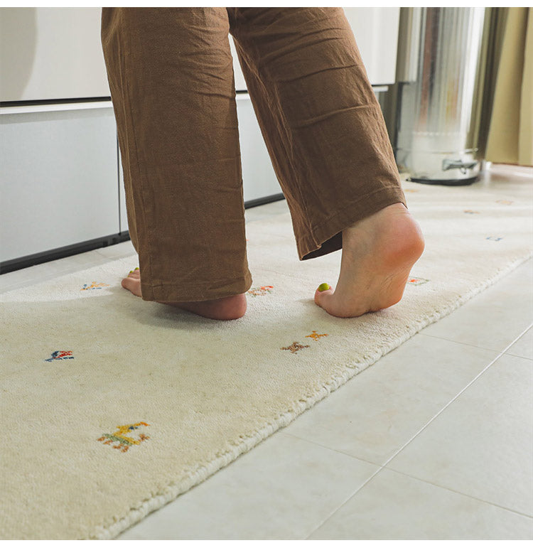 ギャベ ギャッベ キッチンマット 45×120cm インド製 手織りギャッベ ウール100% 防炎ラベル付き おしゃれ ラグ ラグマット カーペット(代引不可)