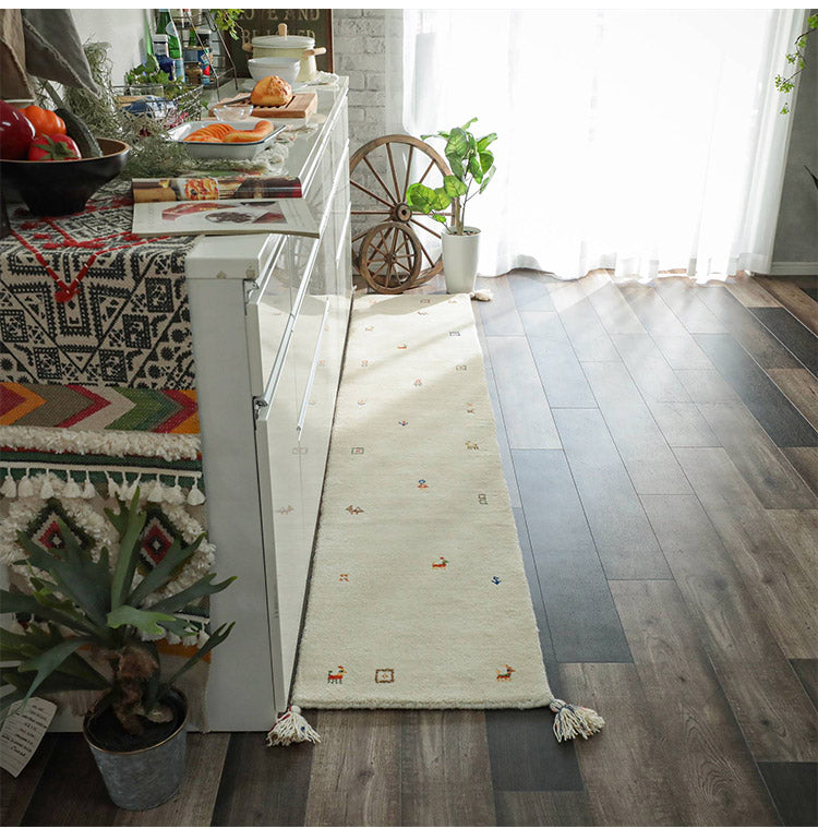 ギャベ ギャッベ キッチンマット 45×180cm インド製 手織りギャッベ ウール100% 防炎ラベル付き おしゃれ ラグ ラグマット カーペット(代引不可)
