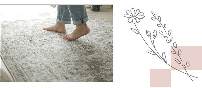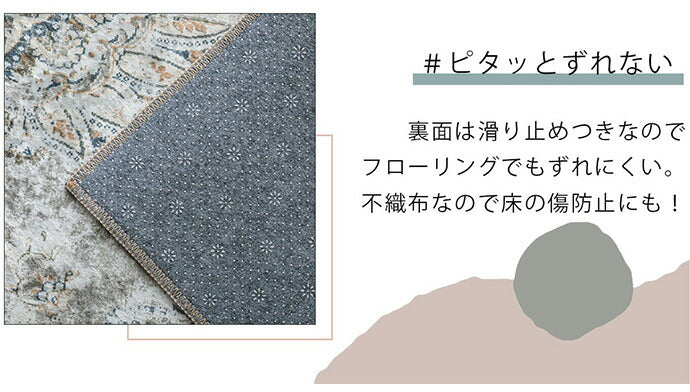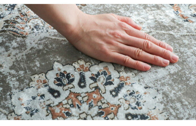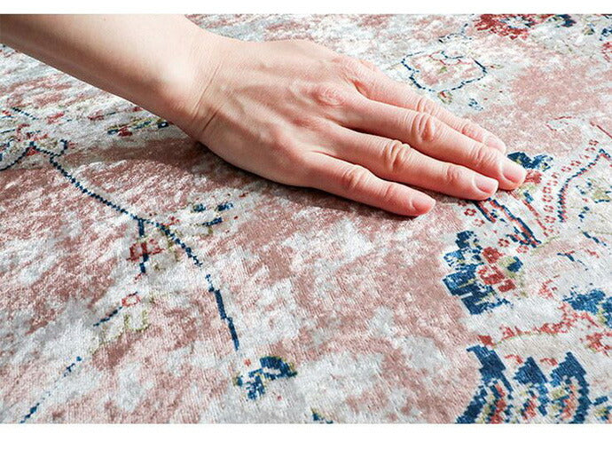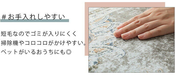 短毛の柔らかな表面にネオ・ビンテージが映える!ペルシャじゅうたん風プリントラグ。