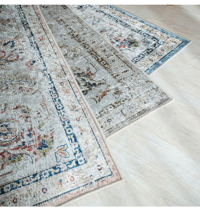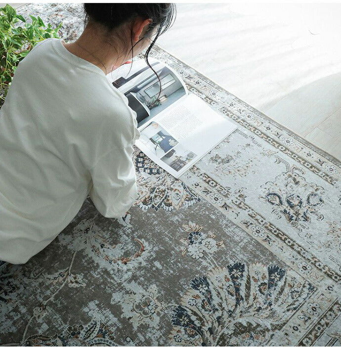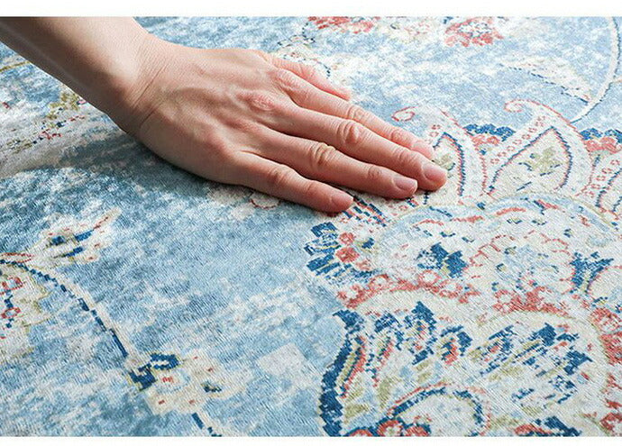 ラグ ラグマット 130×190cm オリエンタル柄 ラグカーペット 絨毯 ヴィンテージ 耐熱 床暖房 ホットカーペット 対応 ウォッシャブル 韓国インテリア(代引不可)