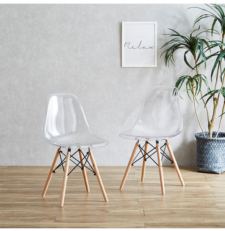 強度が高く透明なPET素材を使用した、デザイナーズクリアシェルチェア。