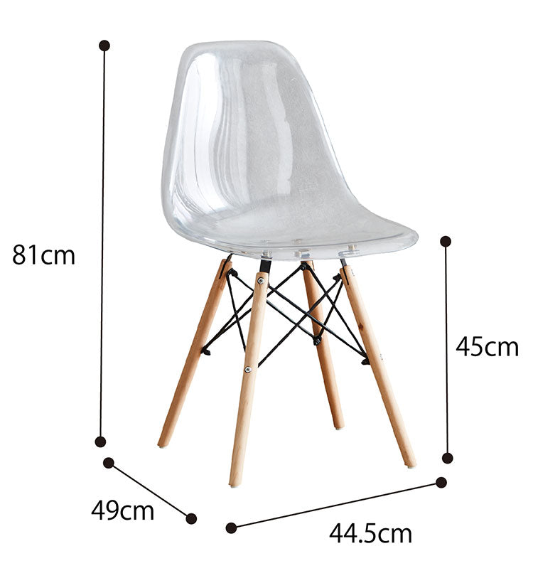 強度が高く透明なPET素材を使用した、デザイナーズクリアシェルチェア。
