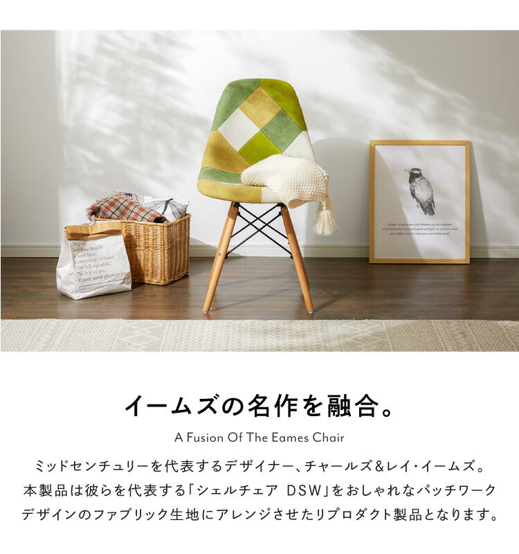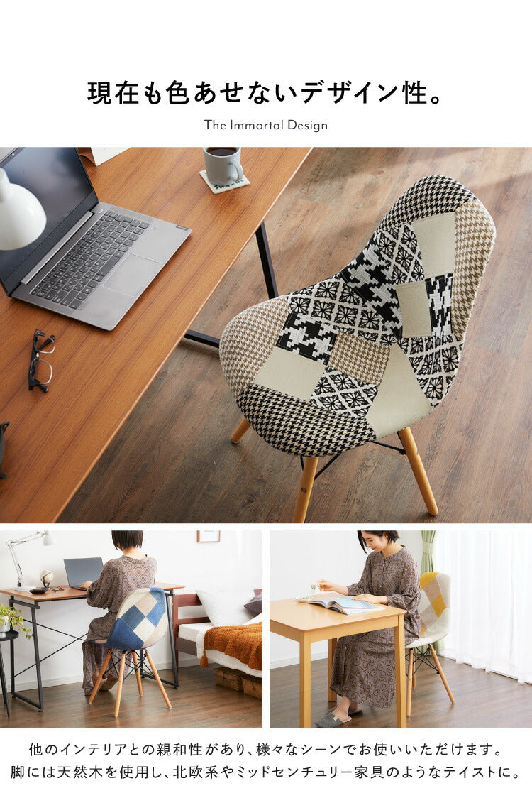 イームズチェア デザイナーズ シェルチェア パッチワーク 布張り ダイニングチェア おしゃれ かわいい カフェ風 椅子 イス チェアー ファブリック 北欧(代引不可)