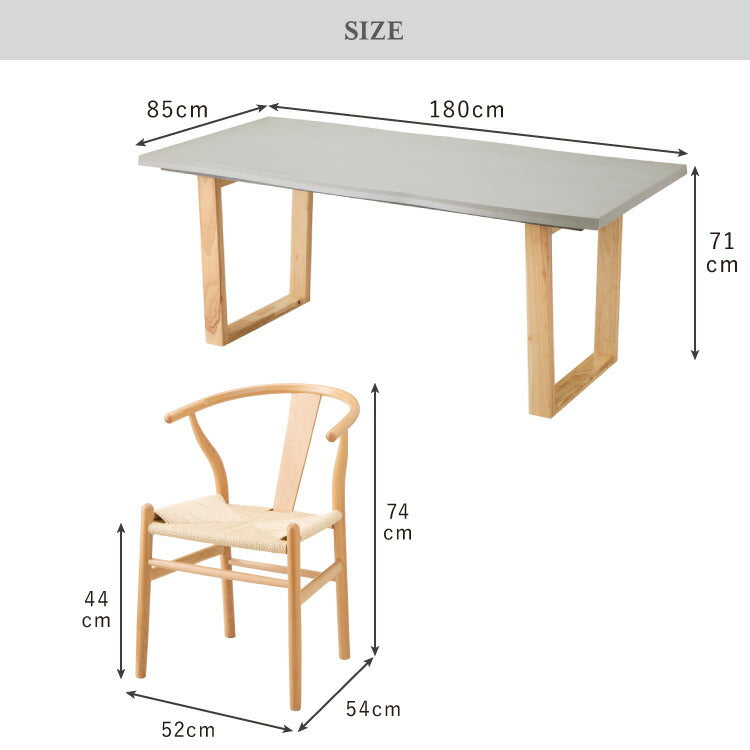 異素材の木とコンクリート柄を組み合わせたモダンなダイニングセット