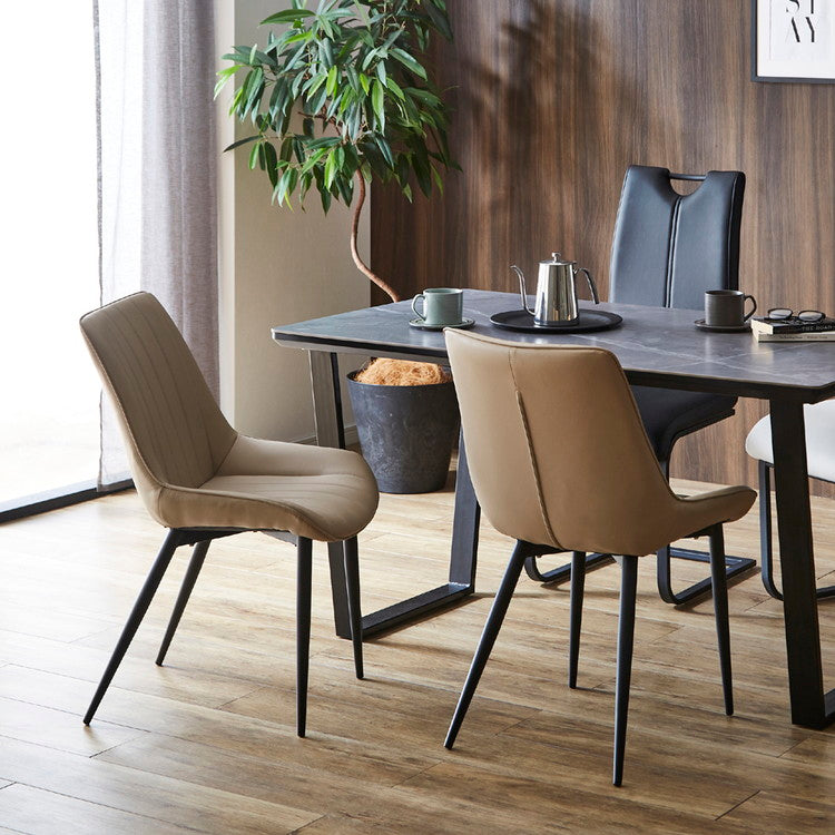 モダンなシンプルデザインでキルティングにすることで陰影を出し、立体感を持たせた魅力あるダイニングチェア