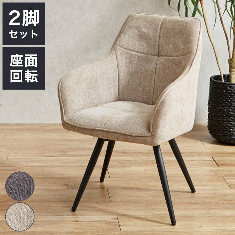 回転式ダイニングチェア 2脚セット 肘付き 肘あり ファブリック スチール脚 回転チェア 回転式チェア ダイニングチェア 椅子 イス チェア チェアー 北欧 モノトーン シンプル おしゃれ(代引不可)