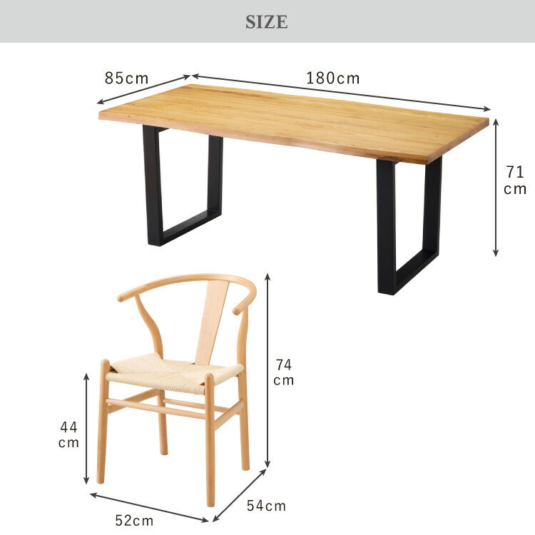 一枚板風 ダイニングテーブルセット 幅180 テーブル+チェア6脚 7点セット 6人掛け 天板浮造り仕上げ オーク無垢材 台形脚 北欧 ペーパーコード チェア おしゃれ(代引不可)