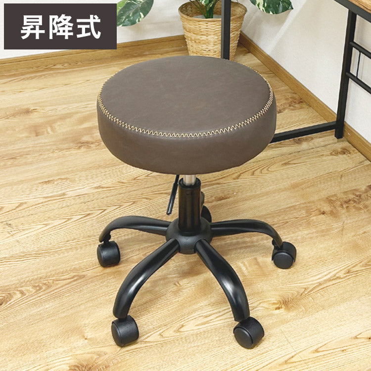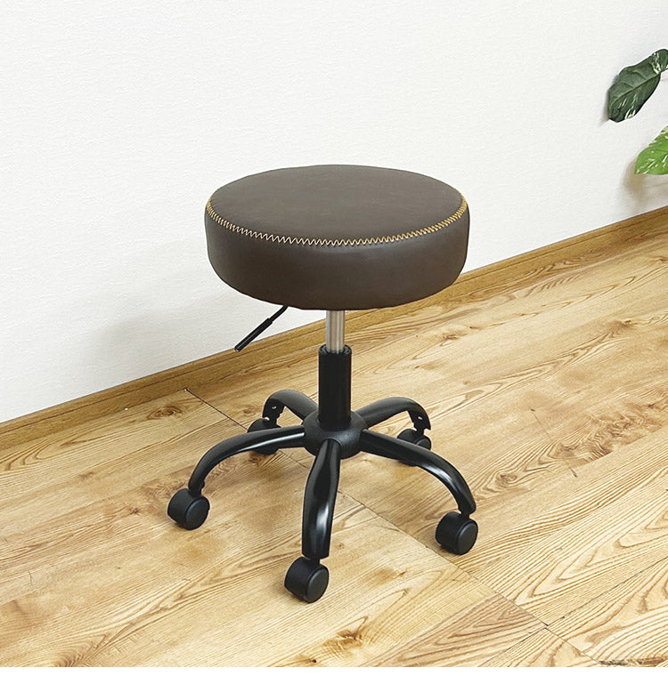 ガス圧昇降 回転式 デスクチェア スツール キャスター付き PUレザー 360度回転 椅子 イス チェア チェアー ステッチ おしゃれ(代引不可)