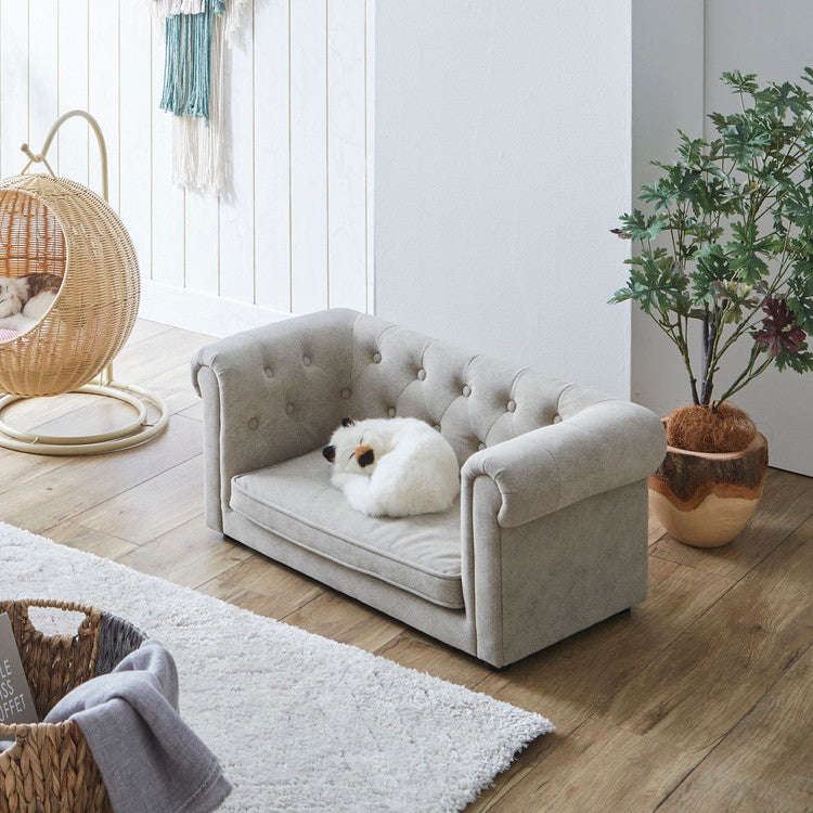 ペット用 猫 犬 ミニソファ 引っかき耐性 はっ水生地 グレー チェスターフィールド風ソファ ペットソファ ペット用ソファ ペット 家具 ペット用家具 おしゃれ(代引不可)