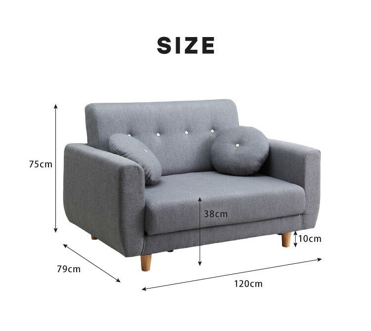 シーンに合わせ、二人掛けソファー、ソファーベッド、ローソファーとして利用可能な、コンパクトサイズの3WAYソファ。