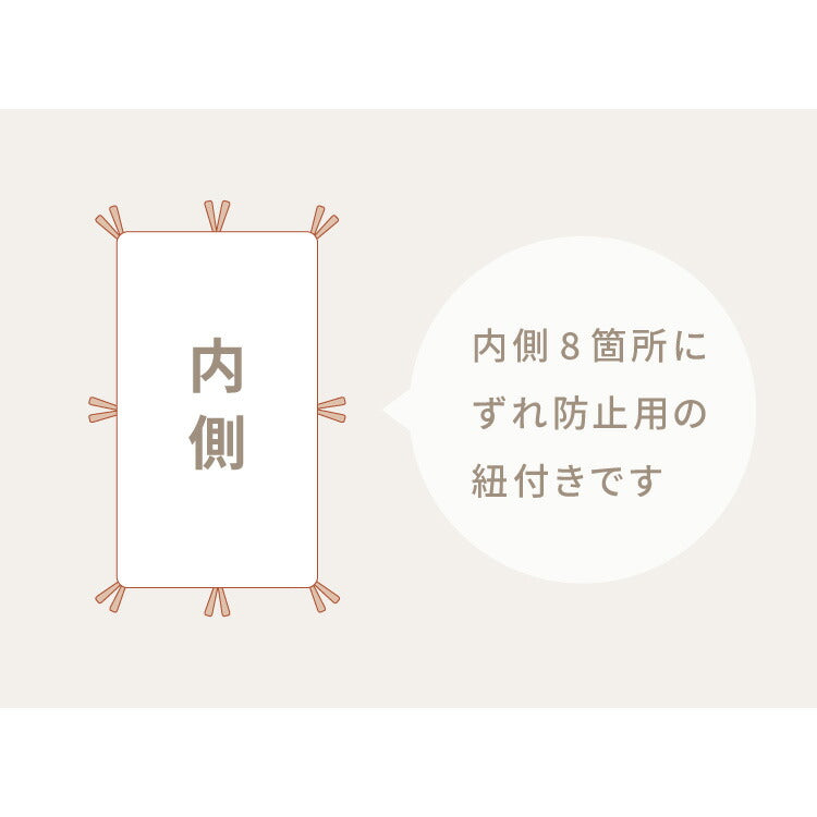 内側に8ヵ所ヒモ付きなので、布団のズレを防止できます。