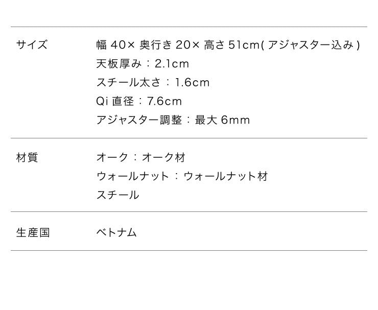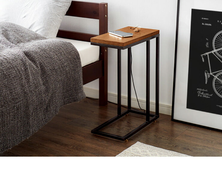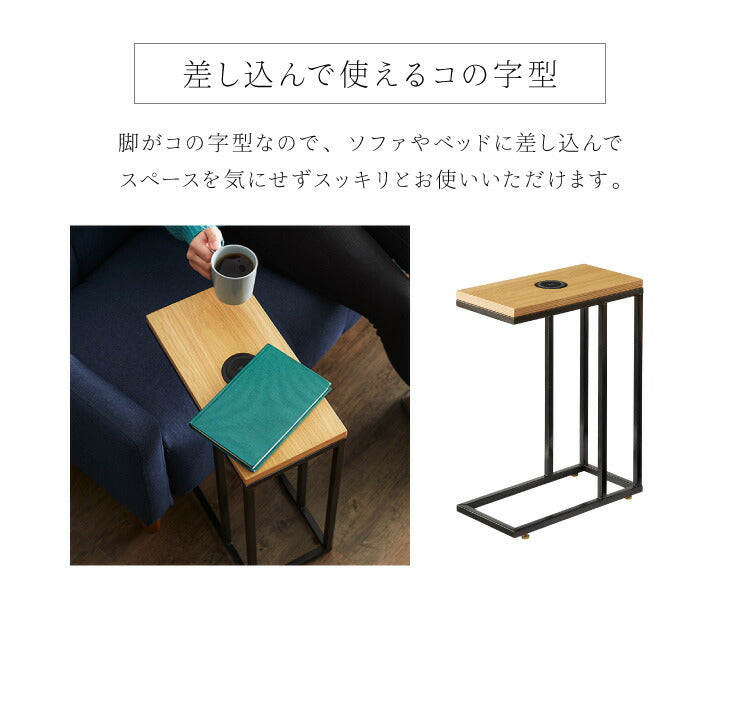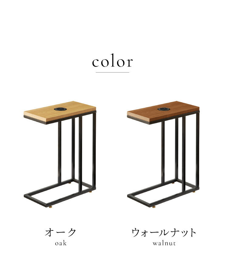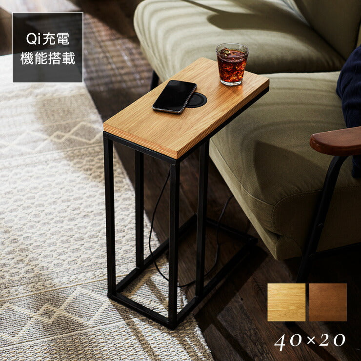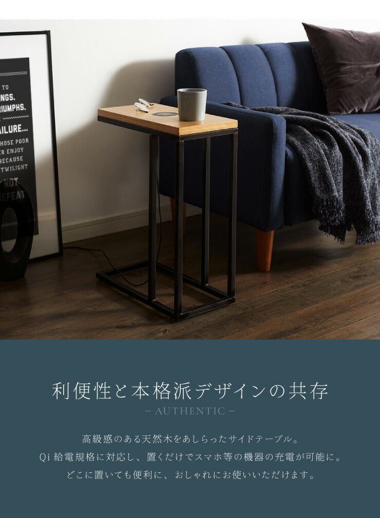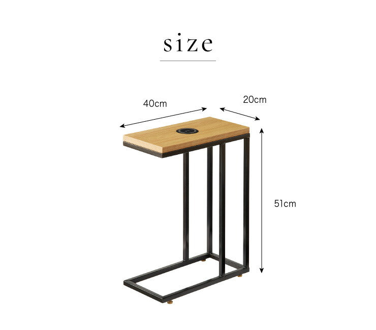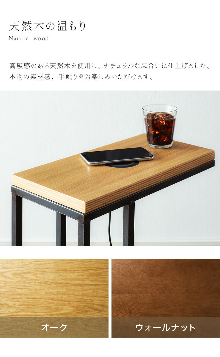 Qi付きサイドテーブル テーブル ワイヤレス充電 QIチャージャー 北欧 おしゃれ サイドテーブル 机 木製 アイアン オーク