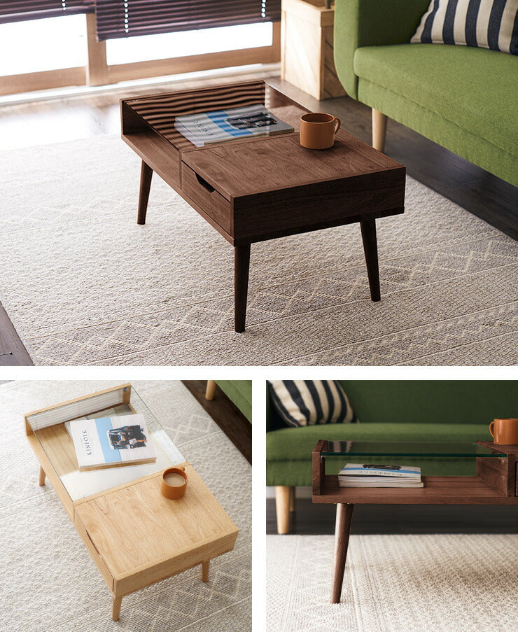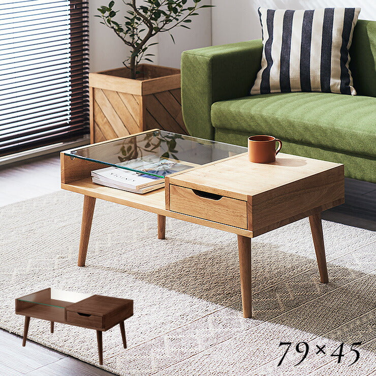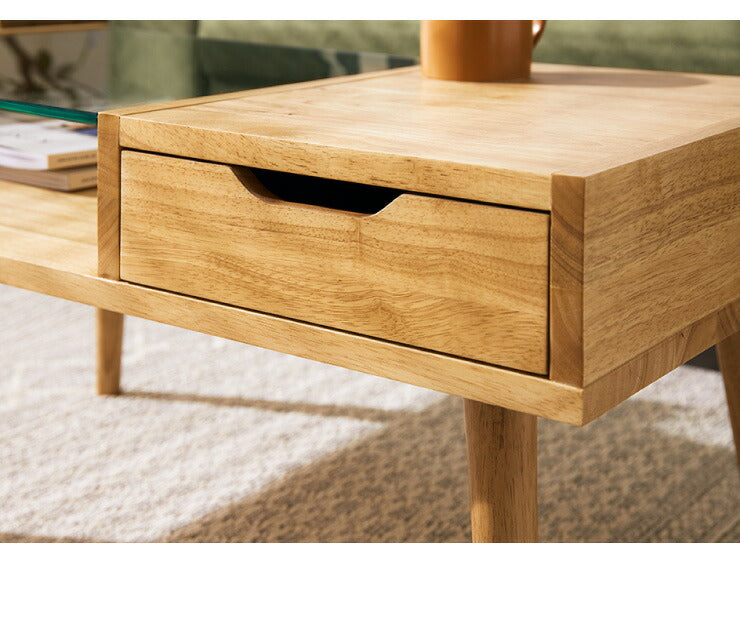 ガラス センターテーブル 引き出し付き 天然木 ローテーブル テーブル 木製 おしゃれ リビングテーブル かわいい カフェ 北欧
