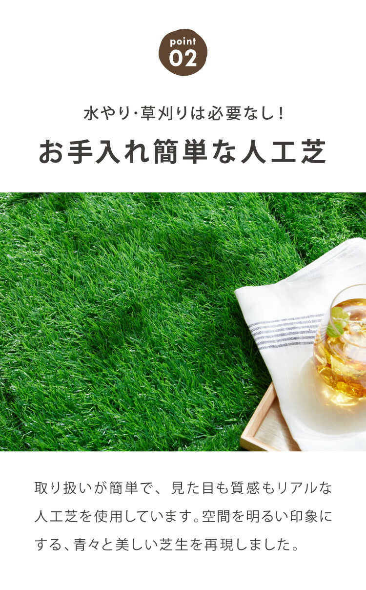 ・お手入れ不要な人工芝で簡単に緑のある空間を作れます
