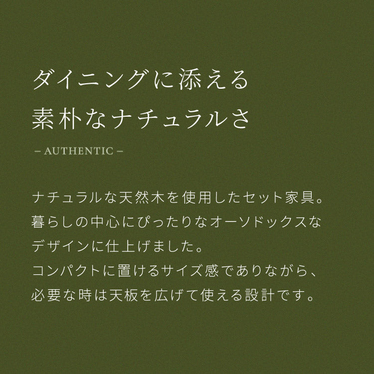 ・80cm、100cm、120cmと3段階で調整できる伸縮ダイニングテーブルのセットです。