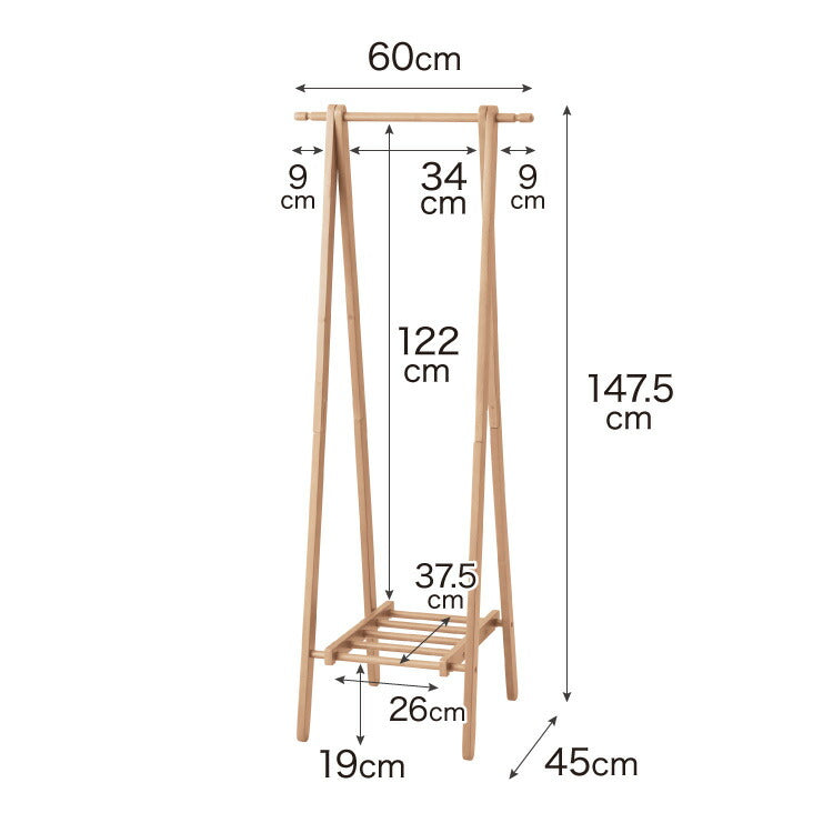 天然木 ハンガーラック 幅60cm 棚付き A型ハンガーラック 折りたたみ 省スペース コンパクト スリム ナチュラル ハンガーラック 木製 ポールハンガー コートハンガー 洋服掛け 衣類収納 木製