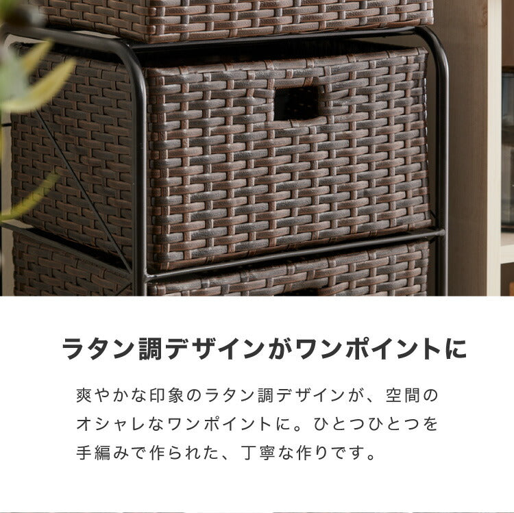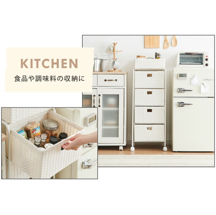 キャスター付きラタン調サニタリー収納 幅35cm スリム 引き出し サニタリーチェスト サニタリー すき間 チェスト ランドリー 棚 ラック チェスト ランドリー収納 収納ボックス キャスターつき