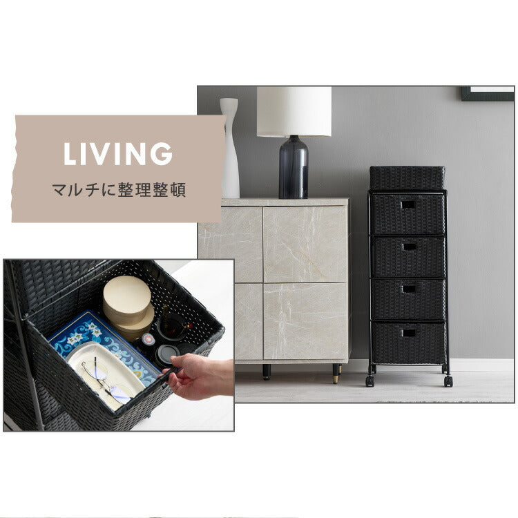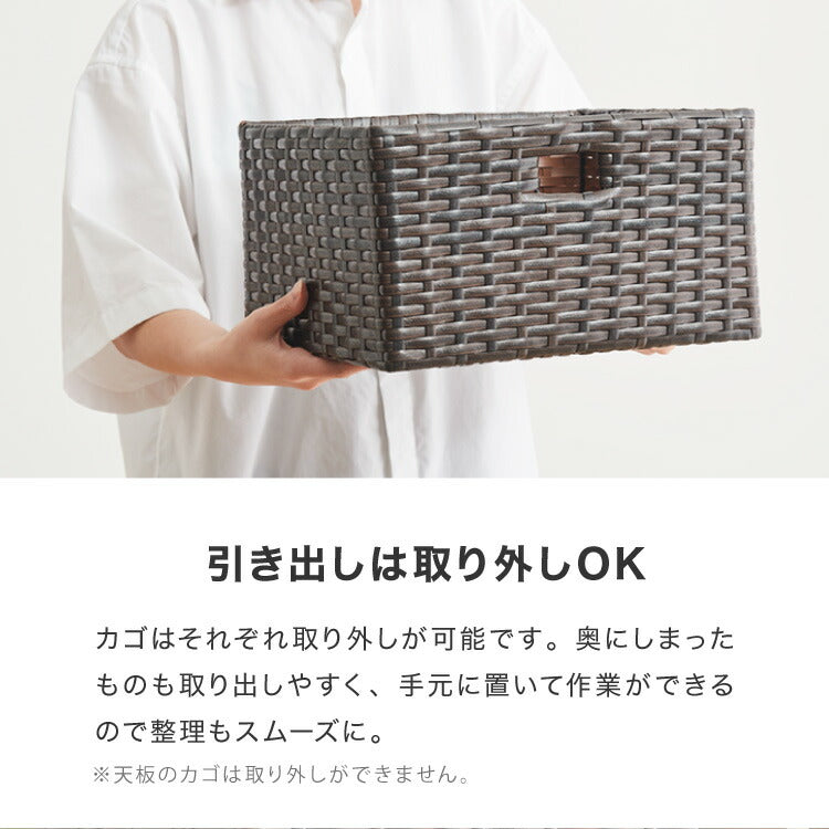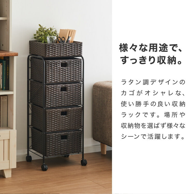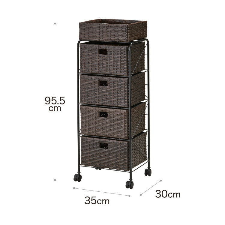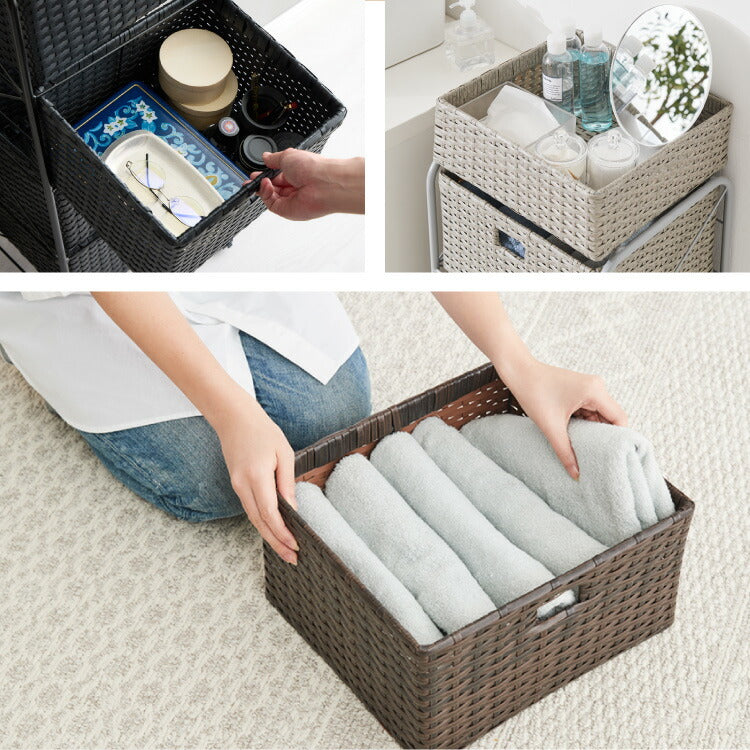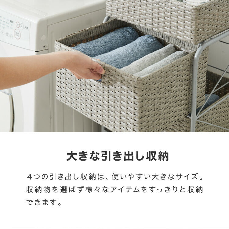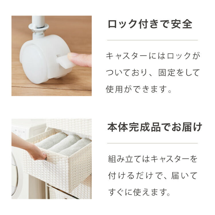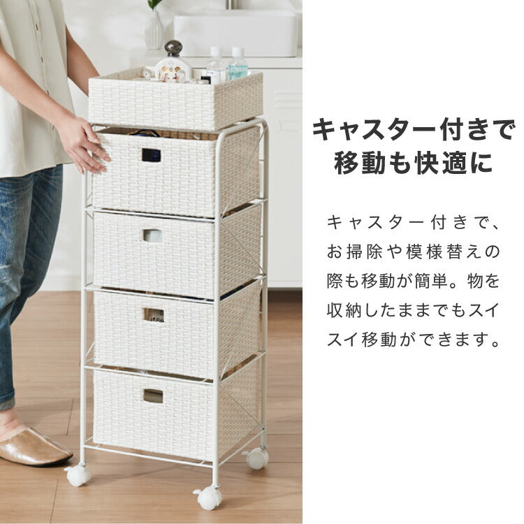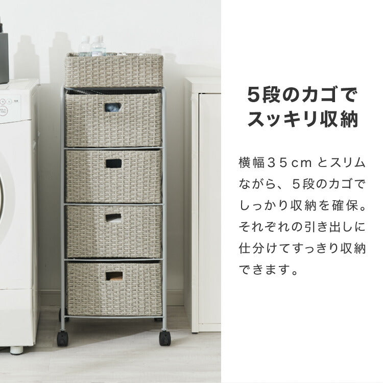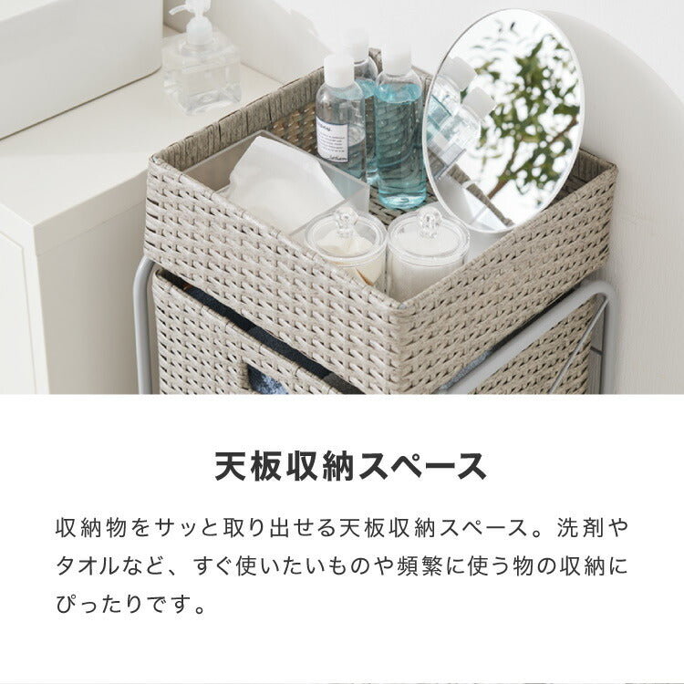 キャスター付きラタン調サニタリー収納 幅35cm