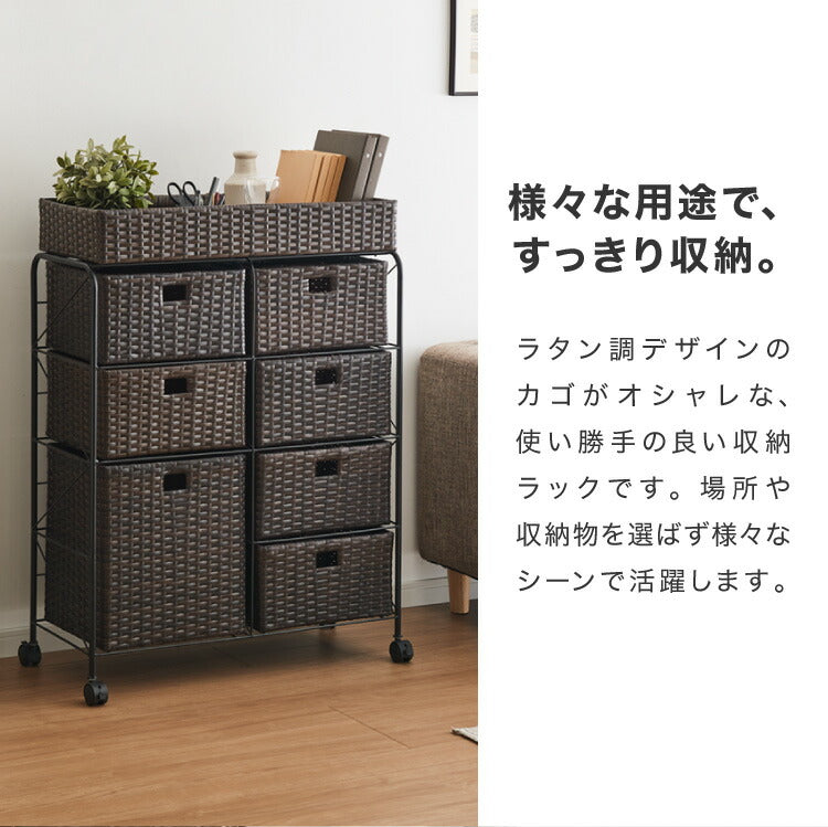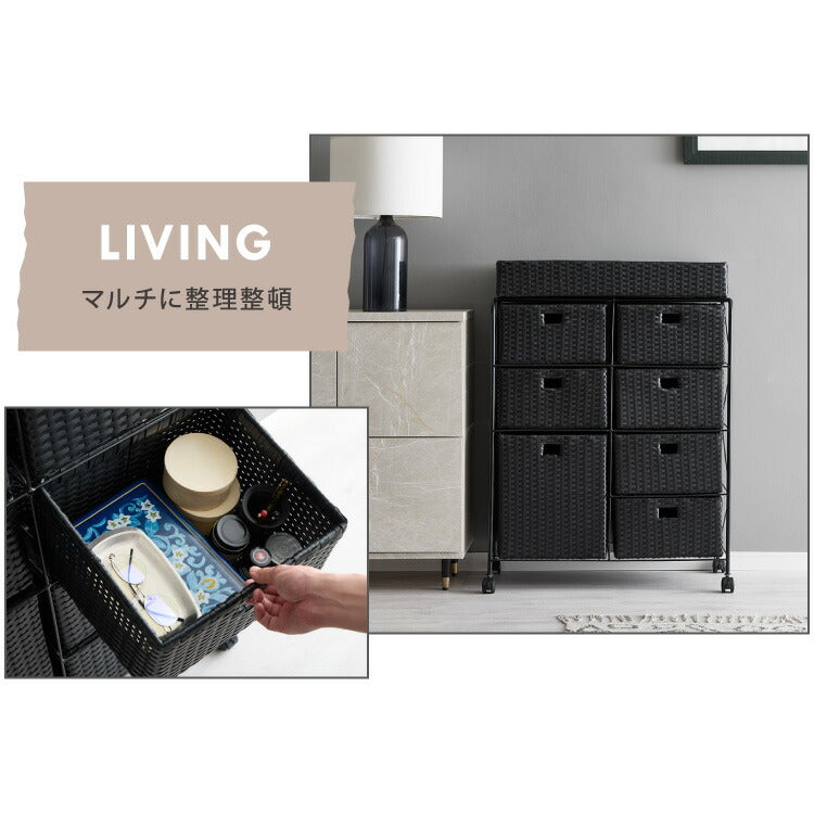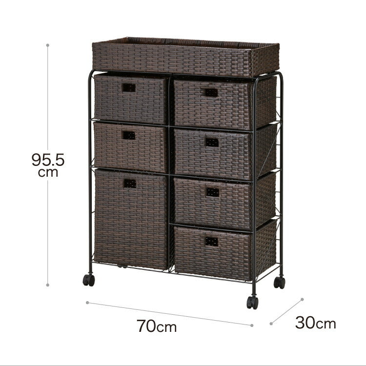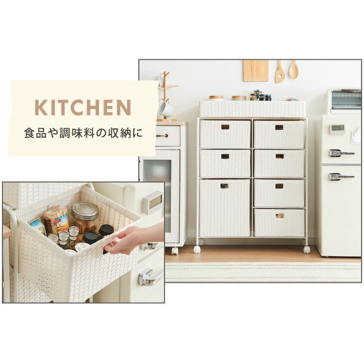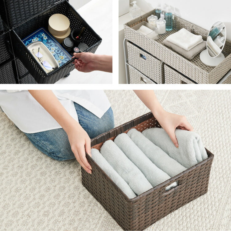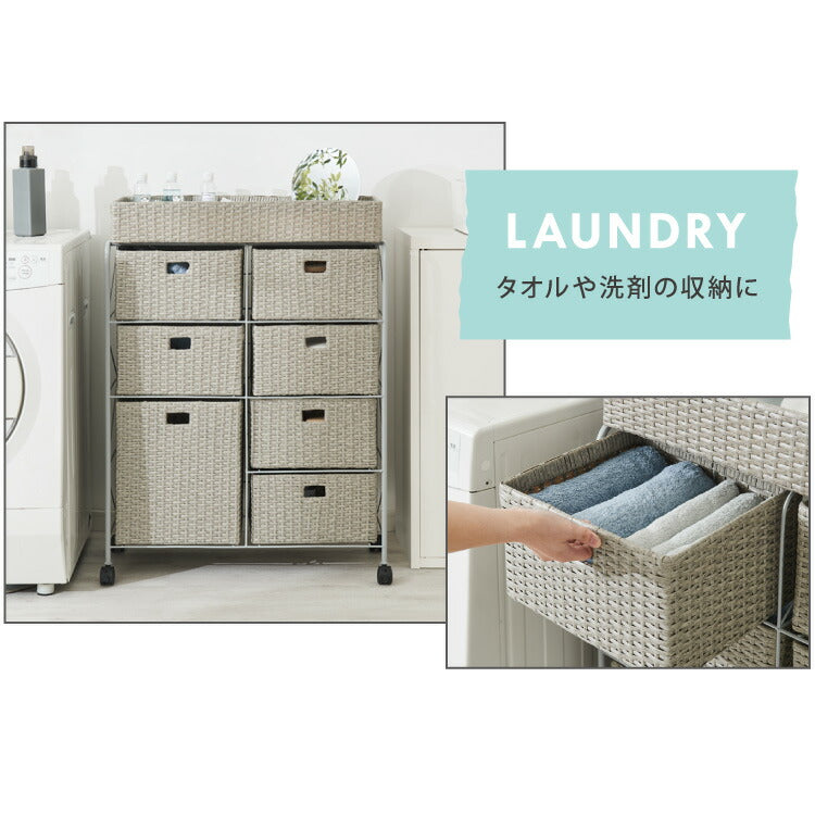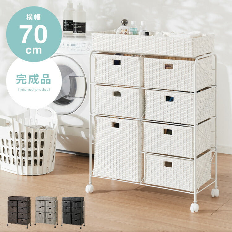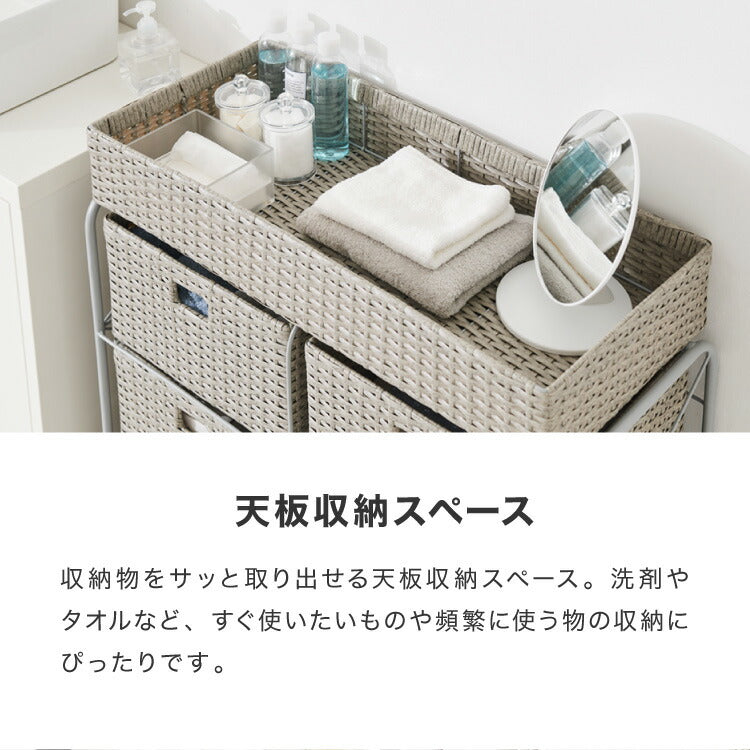 キャスター付きラタン調サニタリー収納 幅70cm ワイド 大容量 引き出し サニタリーチェスト サニタリー すき間 チェスト ランドリー 棚 ラック チェスト ランドリー収納 収納ボックス キャスターつき