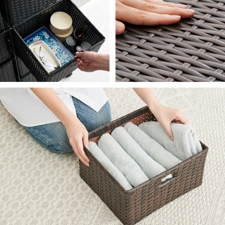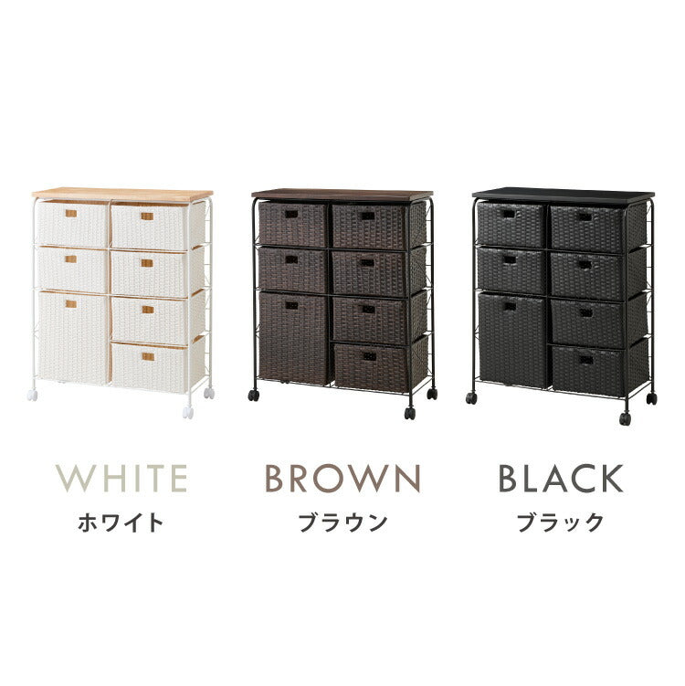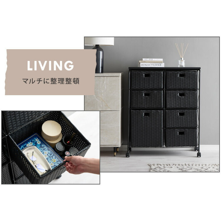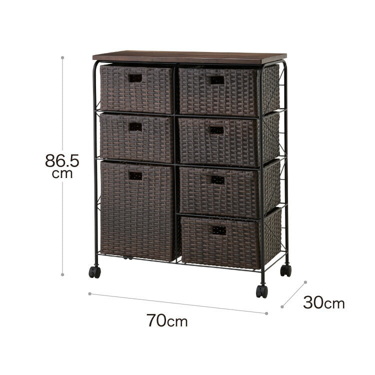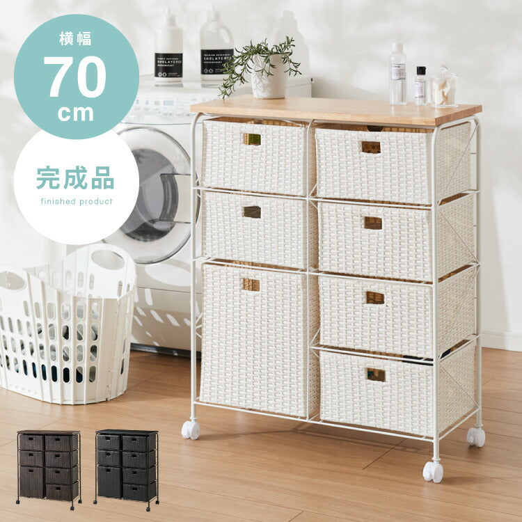 天板付き キャスター付きラタン調サニタリー収納 幅70cm