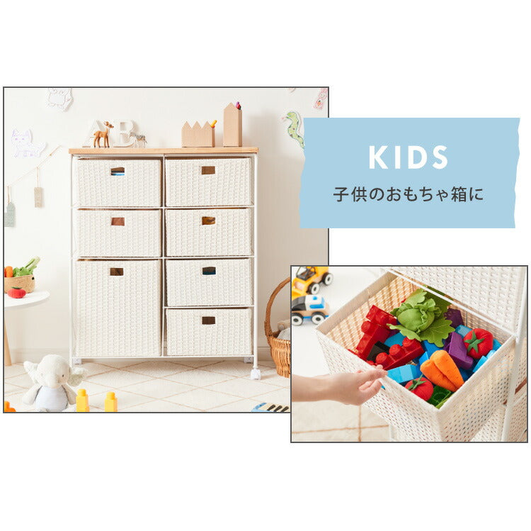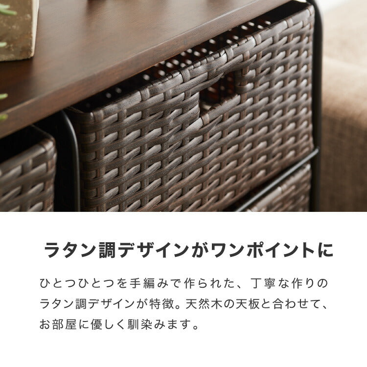 天板付き キャスター付きラタン調サニタリー収納 幅70cm ワイド 大容量 引き出し 木製天板 サニタリーチェスト サニタリー すき間 チェスト ランドリー 棚 ラック チェスト ランドリー収納