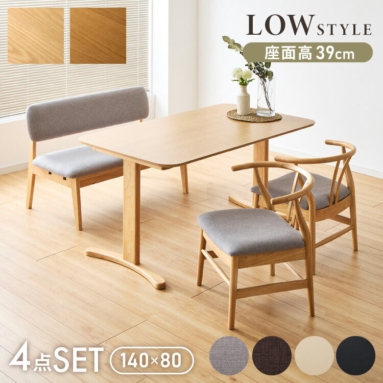 北欧デザインチェア ローガン 座面高39cm 4点セット 4人掛け ダイニングセット 4点 ダイニングチェア ロータイプ デザイナーズチェア ダイニングベンチ 木製チェア 食卓椅子 肘付き 椅子 完成品(代引不可)