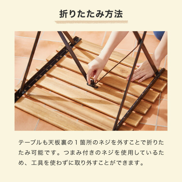アカシア×スチール ガーデン3点セット アカシア ガーデンセット 55cm 天然木 コンパクト 折りたたみ可能 ガーデンテーブル ガーデンチェア 2脚 木製 ベランダ ガーデンファニチャーセット