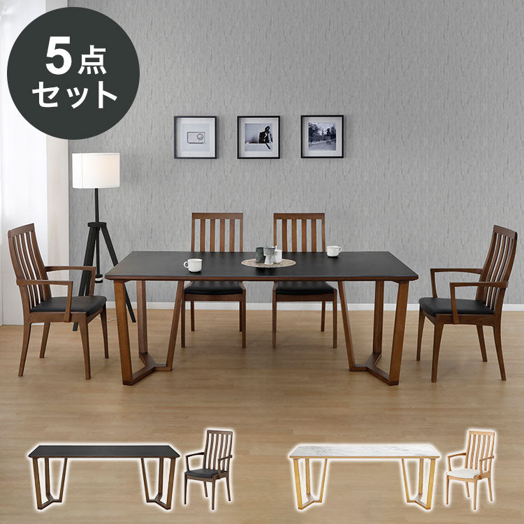 ダイニングセット セラミック 幅180 5点セット 4人掛け アームチェア おしゃれ ダイニングテーブルセット チェア おしゃれ 北欧 耐熱 耐汚 防水 北欧 ブラック ホワイト(代引不可)