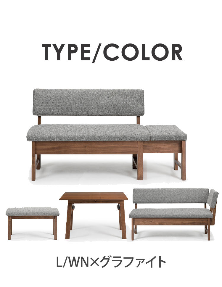 110cm伸長テーブル、110cm伸長チェア、140cmカウチ、80cmベンチの4点セットです。