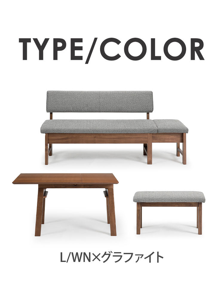 130cm伸長テーブル、130cm伸長チェア、80cmベンチの3点セットです。