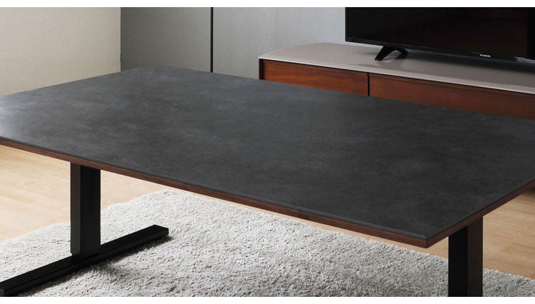 テーブルは高級感のあるセラミックの電動昇降テーブルです。