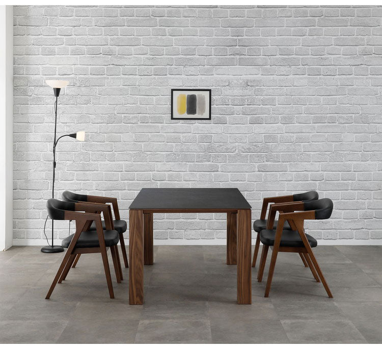 テーブルは高級感のあるセラミックに天然杢の組み合わせ。天板は耐熱性・耐水性・耐摩耗性に優れています。