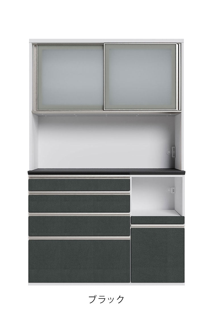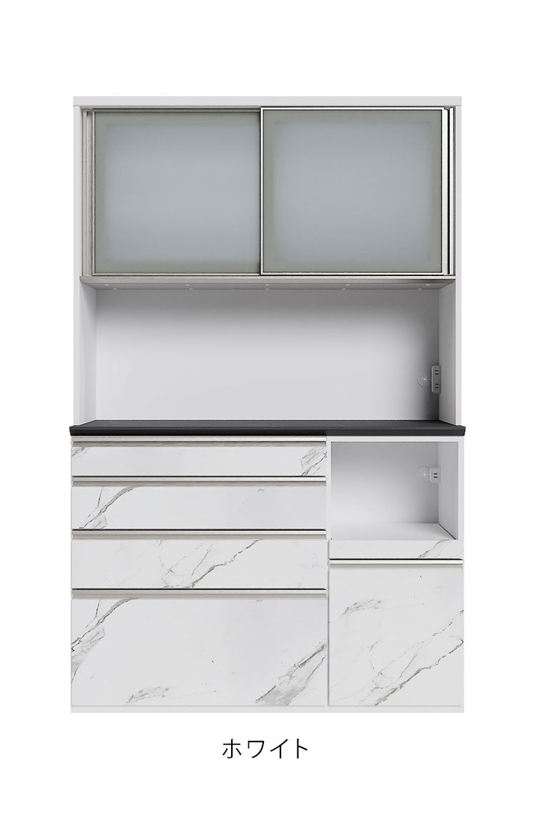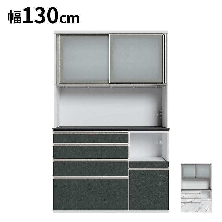 食器棚 幅130cm レンジボード ガラス戸 ブラック ホワイト セラミック 石目調 コンパクト レンジ台 キッチンボード ダイニングボード リビング ダイニング 台所 家族 ファミリー(代引不可)