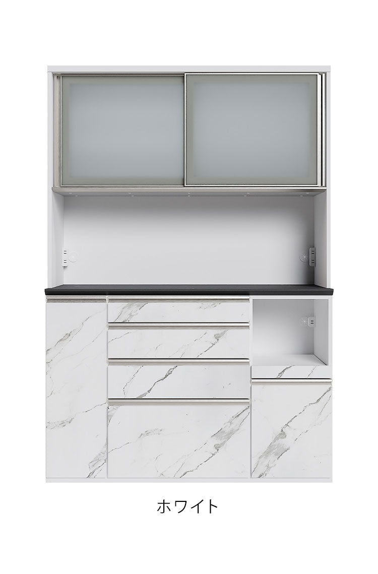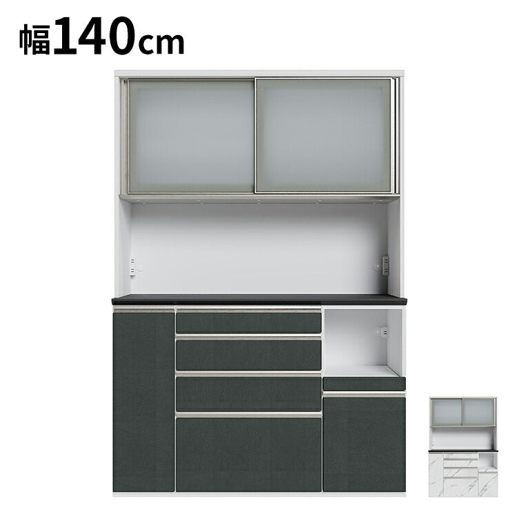 食器棚 幅140cm レンジボード ガラス戸 ブラック ホワイト セラミック 石目調 コンパクト レンジ台 キッチンボード ダイニングボード リビング ダイニング 台所 家族 ファミリー(代引不可)