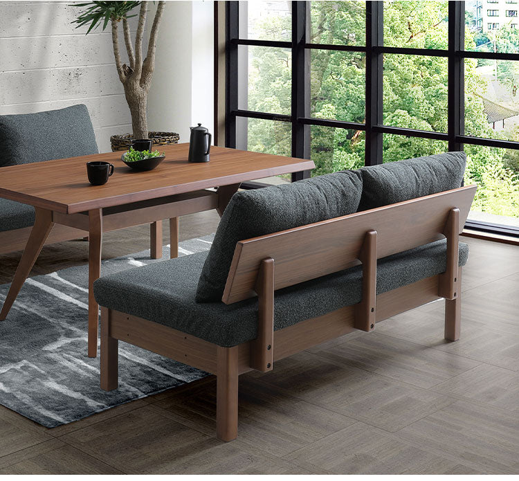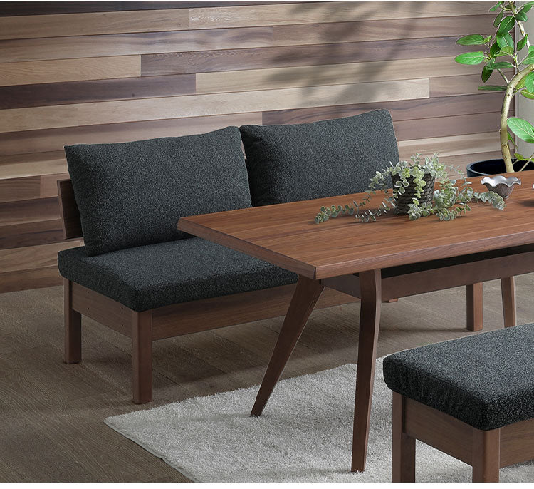 ダイニングチェア 幅150cm 背もたれ付き 座面高42cm 木脚 ファブリック 木製 北欧 おしゃれ ミディアムブラウン ライトブラウン 食卓椅子 リビング ダイニング 椅子 チェア(代引不可)