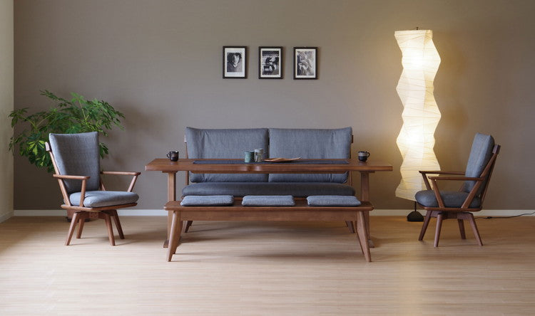 背付きベンチやチェアと同色のクッションがついたベンチになっております。