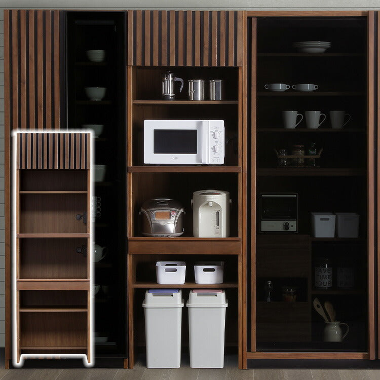 レンジボード レンジ台 完成品 幅62 奥行51 高さ196 ハイタイプ 開梱設置無料 食器棚 ウォールナット 天然木 おしゃれ 大容量 キッチン 収納 ブラックガラス リンク(代引不可)