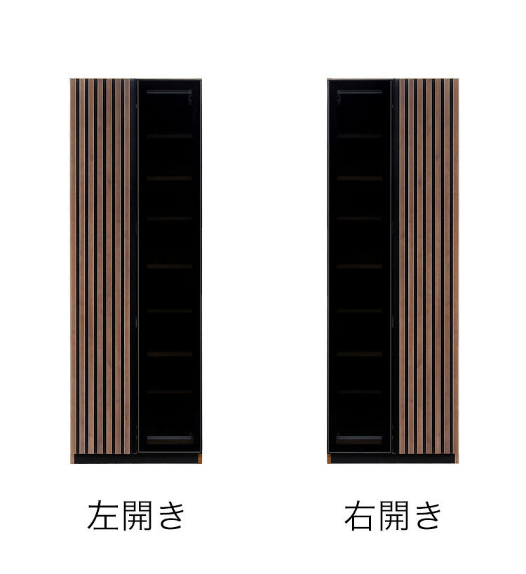 食器棚 折れ戸 完成品 幅66.5 奥行51 高さ196 開梱設置無料 右開き 左開き ハイタイプ ウォールナット 天然木 おしゃれ 大容量 キッチン 収納 ブラックガラス リンク(代引不可)