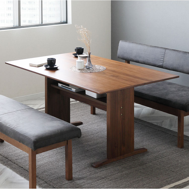 ダイニングテーブル 150×90cm 4人掛け 食卓 天然木 木製 棚付き 2本脚 シンプル おしゃれ ウォールナット オーク テーブル リビング ダイニング(代引不可)