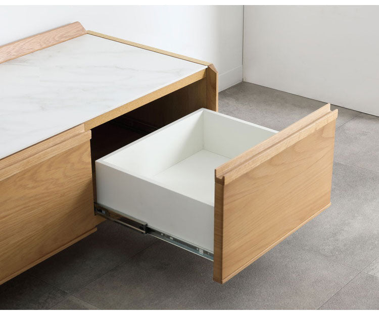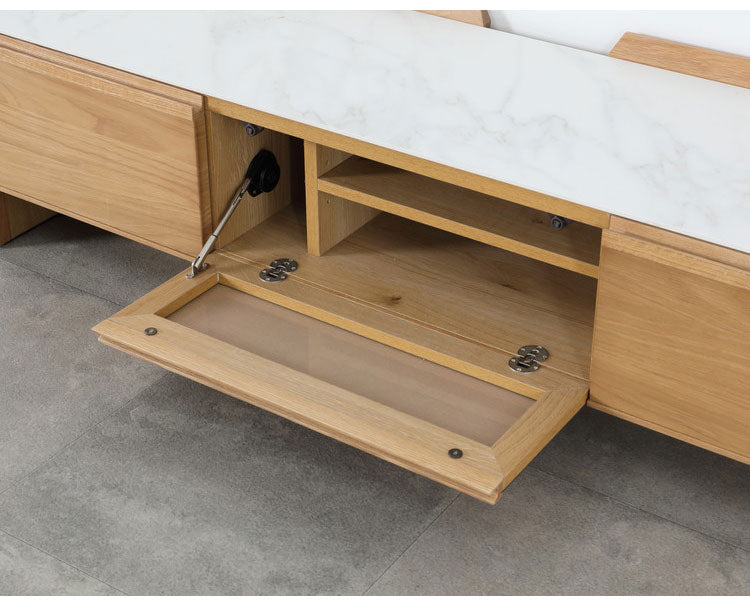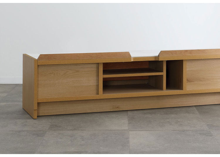 セラミックトップと天然杢突板の異素材の組み合わせで高級感のあるTVボードです。