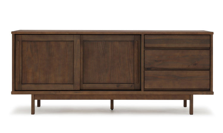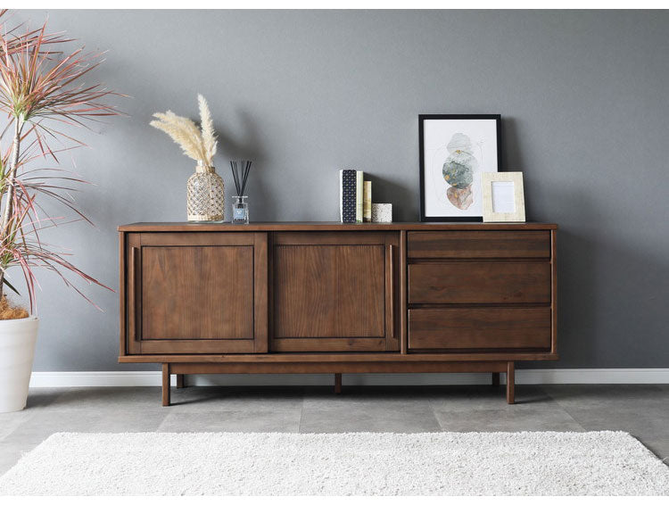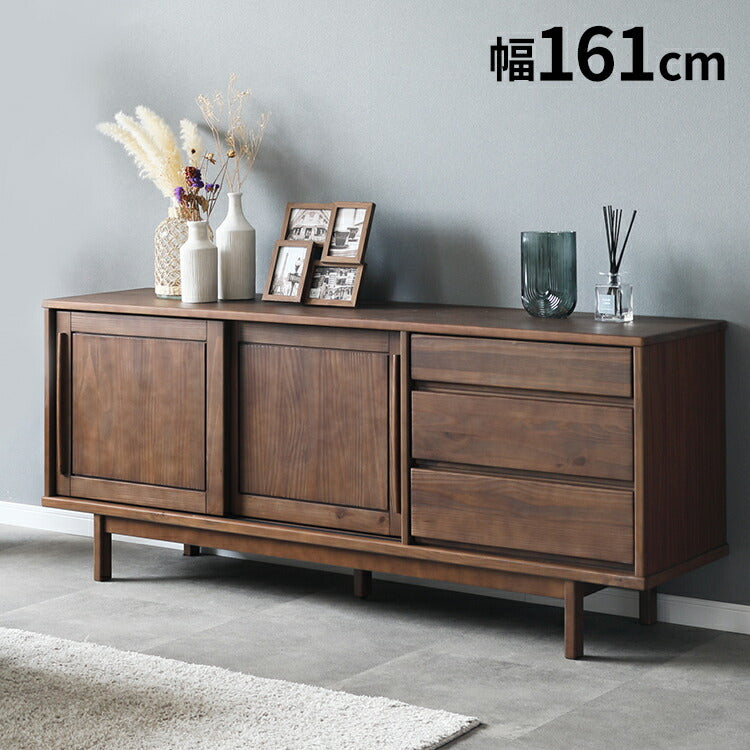 キャビネット 幅161cm サイドボード 脚付き パイン材 ウォールナット 桐 天然木 ヴィンテージ ラック 収納 棚 大容量 コンパクト おしゃれ リビング ダイニング スリム(代引不可)