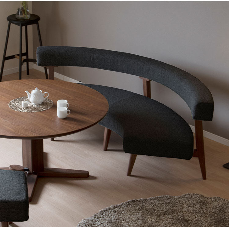 ラウンドソファ 2~3人掛け 座面高41.5cm 円形 背もたれ付き 木脚 ファブリック 木製 ラウンドチェア ソファ モダン おしゃれ リビング ダイニング ラウンジ 丸テーブル(代引不可)