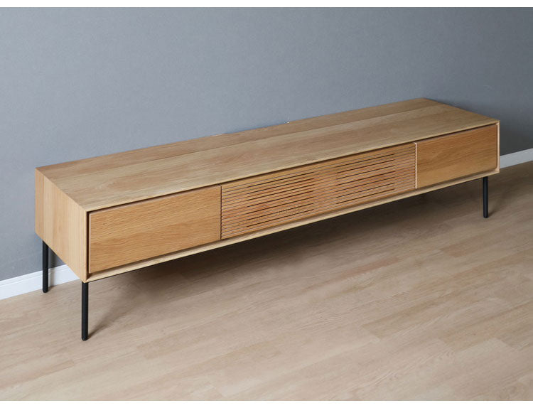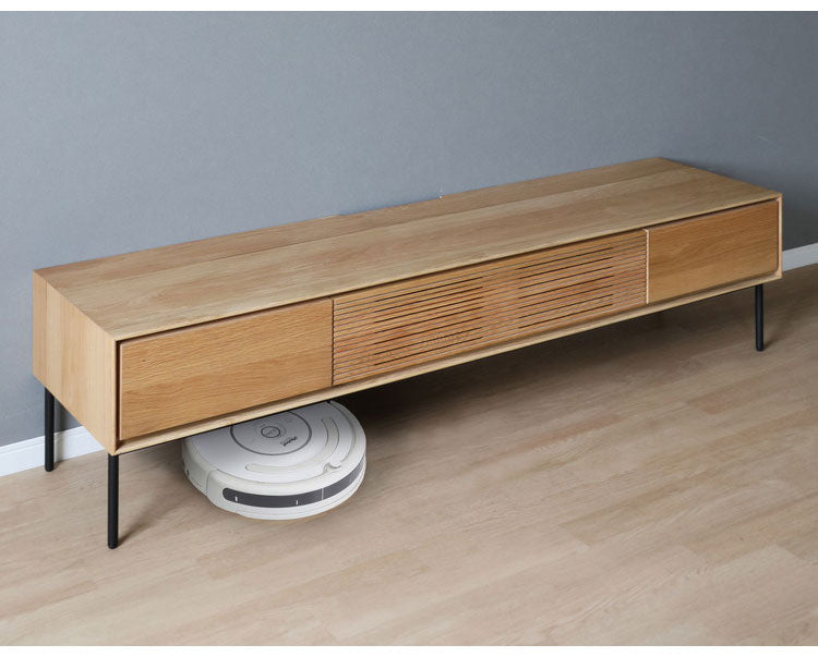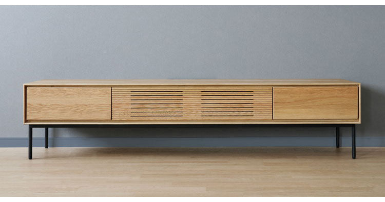 中央脚を無くし、脚を細くしたスッキリとしたデザインの天然杢TVボード。